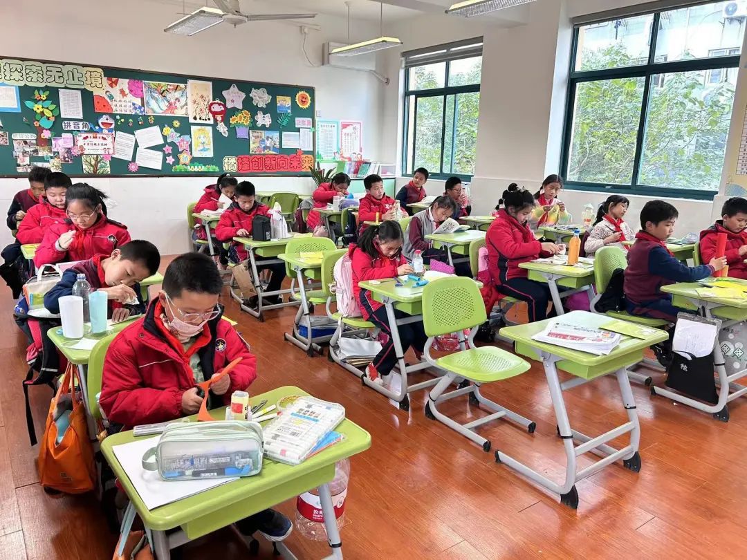 走进小礼堂,同学们正在专心致志倾听科普讲座,《飞翔的奥妙》、《梦境的星空》这些精彩的科技类课程带领着他们在奥秘的世界里飞翔。与此一起,各个班级里也正在展开构思火箭模型手艺制造大比拼,各种形状的矿泉水瓶、快递包装纸板箱等抛弃资料在孩子们的巧手下变成了千姿百态的“梦中火箭”。