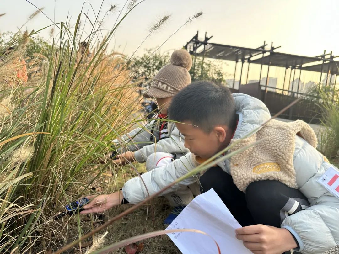 四季有景的百草园、天然野趣的雨水花园、梦境绝美的绿之丘……孩子们探寻滨江生态,凭借“形色”“花伴侣”等植物辨认软件知道植物的品种、寻找一片美丽的落叶制造成树叶标本、用画笔描绘观察到的植物或生态美景,并且在教师的带领下展开雨水花园活动,探求雨水究竟怎样润花园。
